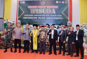 gaungdemokrasi Labuhanbatu.com-Wakil Bupati Labuhanbatu, H. Jamri, menghadiri secara langsung prosesi Wisuda Sarjana Strata-1 Universitas Islam Labuhanbatu (UNISLA) Angkatan XIX Tahun 2026 yang digelar di Ballroom Suzuya Rantauprapat, Sabtu (14/02). Kegiatan wisuda tersebut turut dihadiri unsur Forkopimda, Ketua TP PKK Labuhanbatu, perwakilan LLDIKTI Wilayah Sumatera Utara, pengurus Yayasan UNISLA, perwakilan Pemerintah Kabupaten Labuhanbatu Utara, para […]