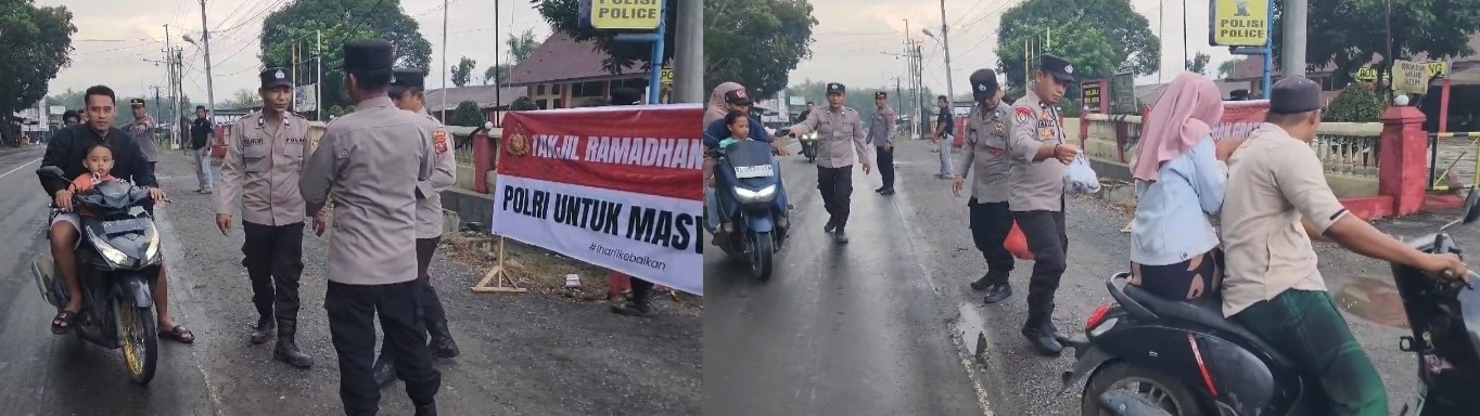 Sat Samapta Polres Lubuk Linggau Hadir Membawa Kesejukan Bagi Para Pengguna Jalan Melalui Aksi Bagi-Bagi Takjil