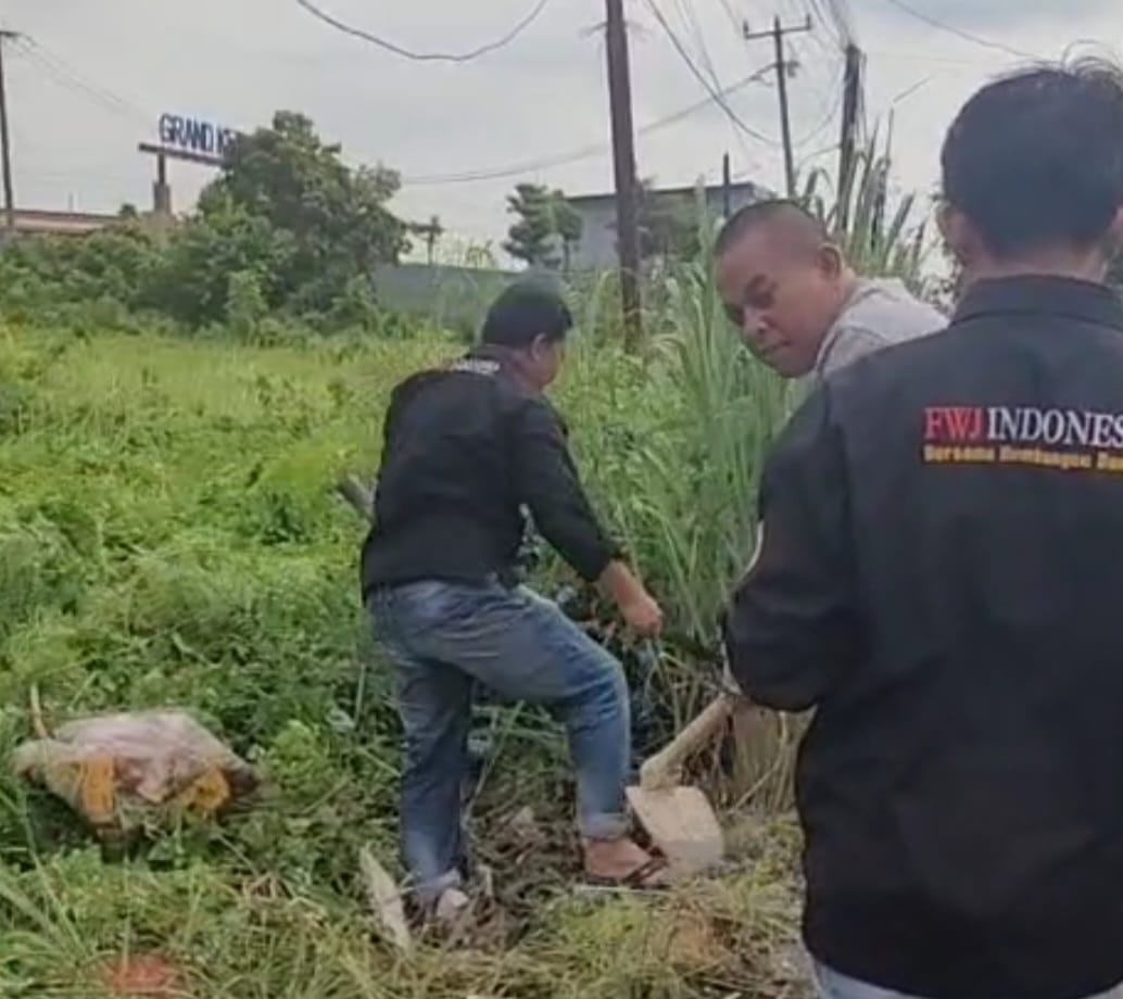 Ketua Forum Wartawan Jaya (FWJ) Indonesia Siti Mariam bersama jajaran pengurus dan anggotanya menunjukkan kepedulian sosial dengan melakukan aksi bersih-bersih ilalang yang menghalangi pengguna jalan serta perbaikan jalan rusak di Desa Kertamukti, Kecamatan Cibitung, Kabupaten Bekasi, pada Sabtu (10/1/2026).