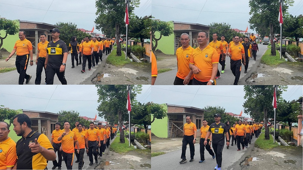 Dalam rangka menjaga kesehatan, kebugaran fisik, sekaligus mempererat soliditas internal, Kapolres Langkat bersama pejabat utama dan personel Polres Langkat melaksanakan kegiatan olahraga pagi dengan berjalan kaki di sekitar jalan Latjen R. Soeprapto, Jumat (10/10/2025).