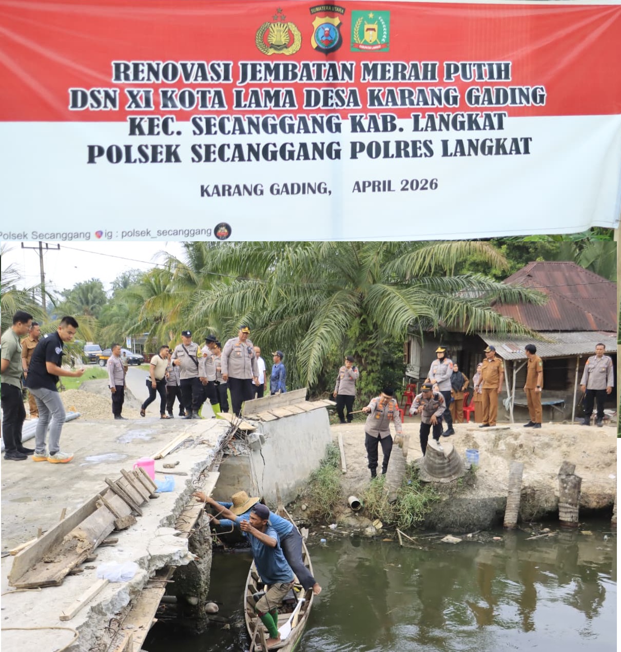 Renovasi Jembatan Merah Putih Sang Bhayangkara merupakan bagian dari program Polri Untuk Masyarakat yang dilaksanakan Polsek Secanggang bersama Forkopimca dan masyarakat setempat.