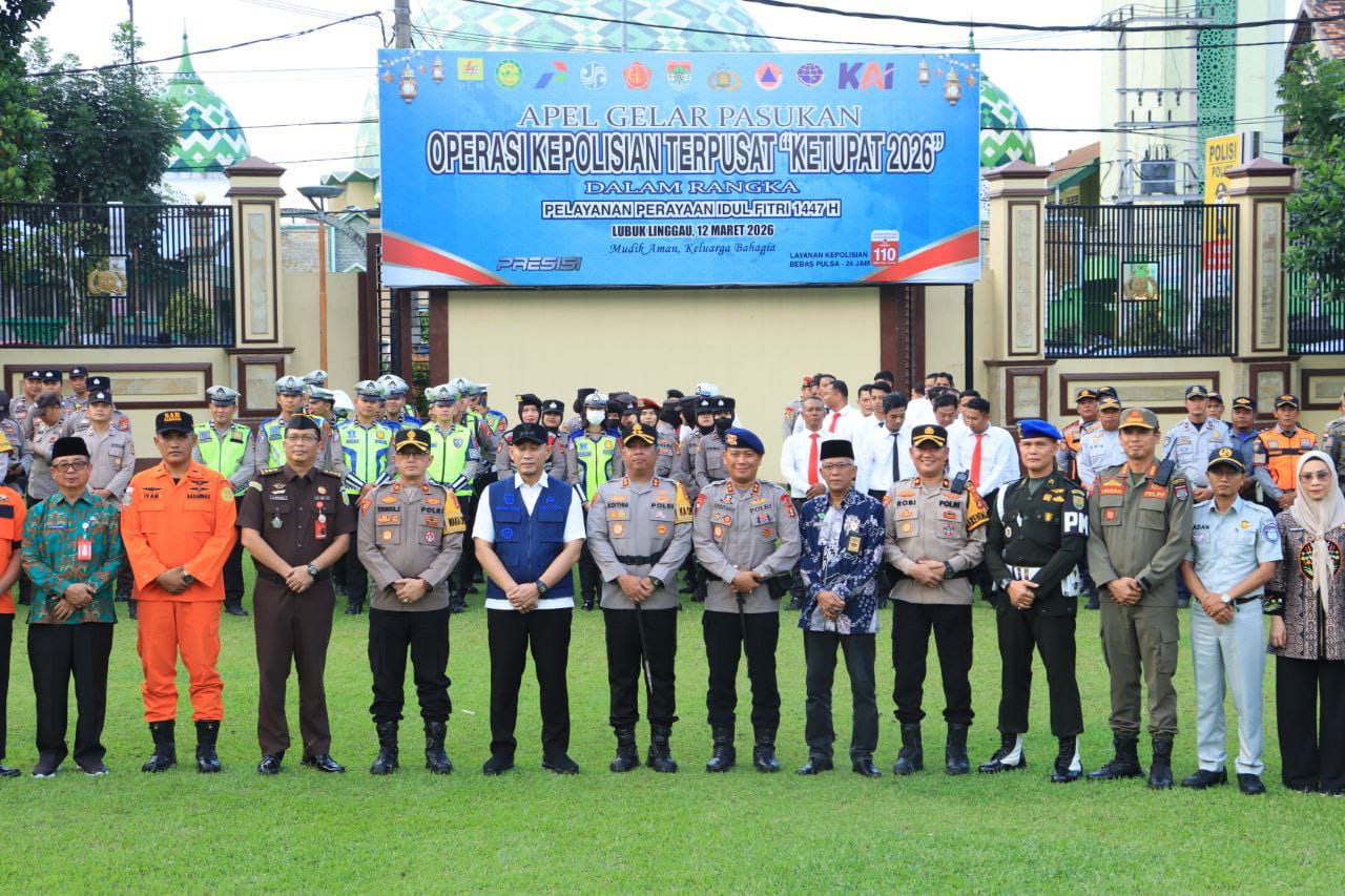 gaungdemokrasi.com Lubuk Linggau – Dalam rangka menjamin keamanan dan pelayanan prima menjelang Hari Raya Idul Fitri 1447 H / 2026 M, Polres Lubuk Linggau menggelar Apel Gelar Pasukan Operasi Terpusat “Ketupat-2026”. Kegiatan ini berlangsung khidmat di halaman Mapolres Lubuk Linggau pada Kamis sore (12/3/2026).