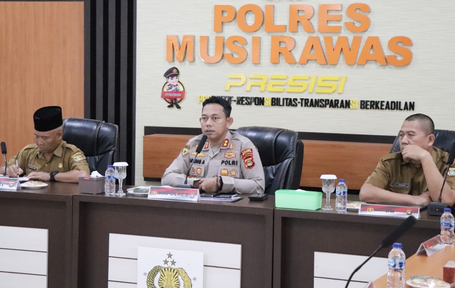 Rapat tersebut dipimpin langsung, Kapolres Musi Rawas, AKBP Agung Aditya Prananta, S.H., S.I.K., M.H., didampingi, Staf Ahli Bupati Bidang Ekonomi Keuangan dan Pembangunan, Supardiyono dan beberapa OPD yaitu Kesbangpol, Diskominfo, Dinkes, Damkar, BPBD, Dishub dan Basarnas Musi Rawas.