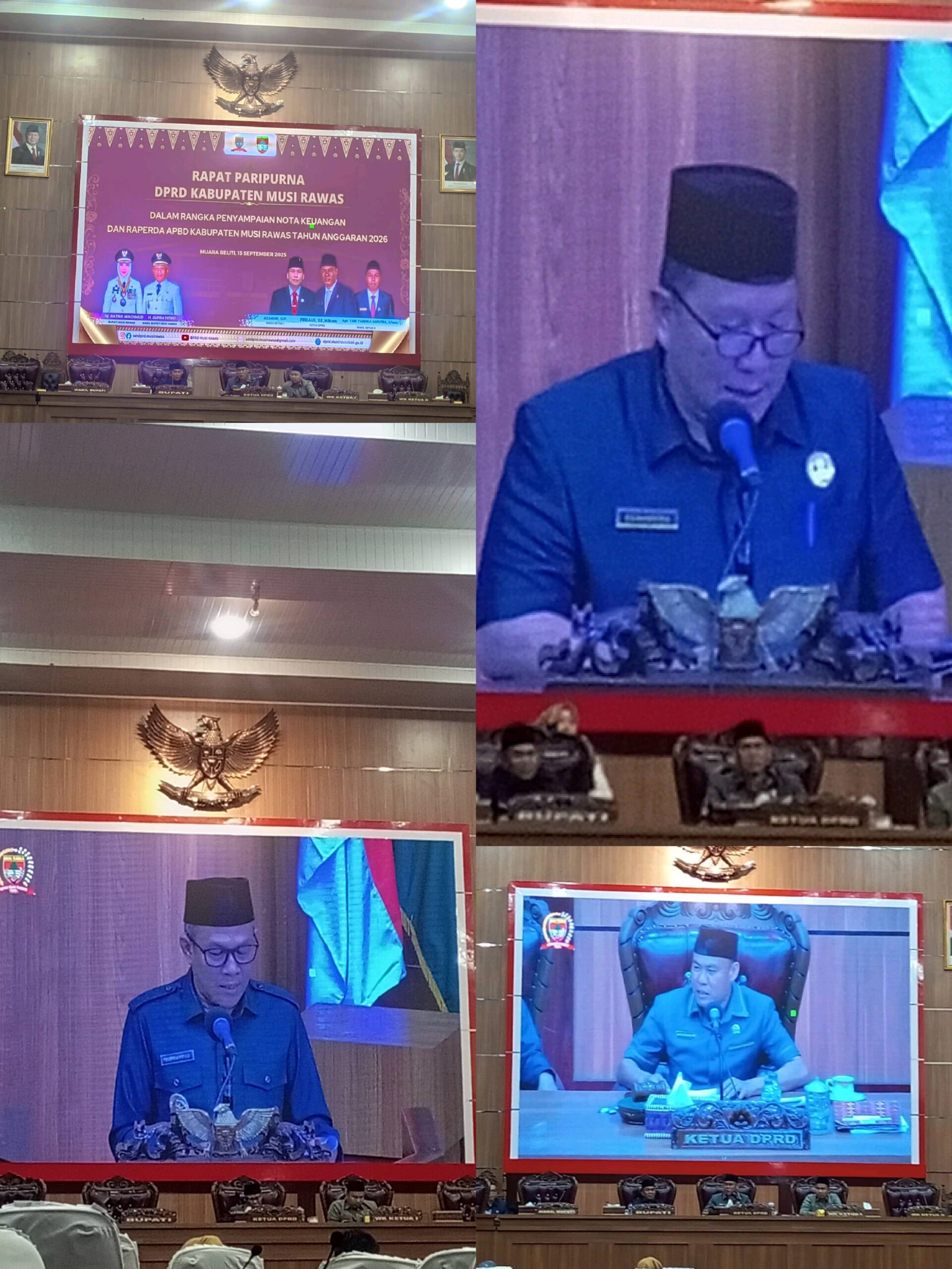 Rapat Paripurna DPRD Kabupaten Musi Rawas dalam rangka penyampaian nota keuangan dan rapperda APBD Kabupaten Musi Rawas tahun anggaran 2026 pada hari Senin tanggal 15 September 2025 pukul 13.00WIB. tempat ruang rapat paripurna DPRD Kabupaten Musi Rawas