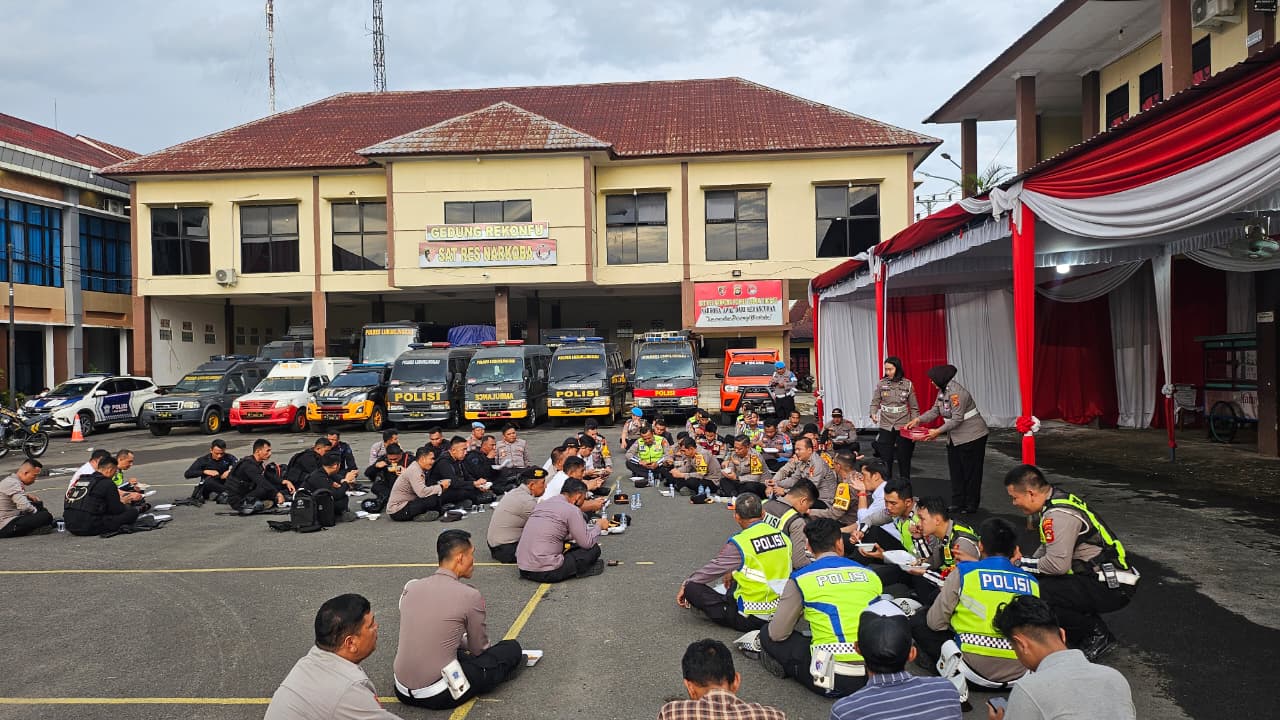 Sebelum benar-benar terjun ke titik-titik pengamanan di seluruh penjuru kota, Kapolres Lubuk Linggau, AKBP Adithia Bagus Arjunadi, mengajak seluruh jajarannya untuk istirahat sejenak. Tanpa sekat dan tanpa memandang pangkat, orang nomor satu di Polres Lubuk Linggau itu tampak santai duduk lesehan di lantai halaman apel bersama anggotanya.