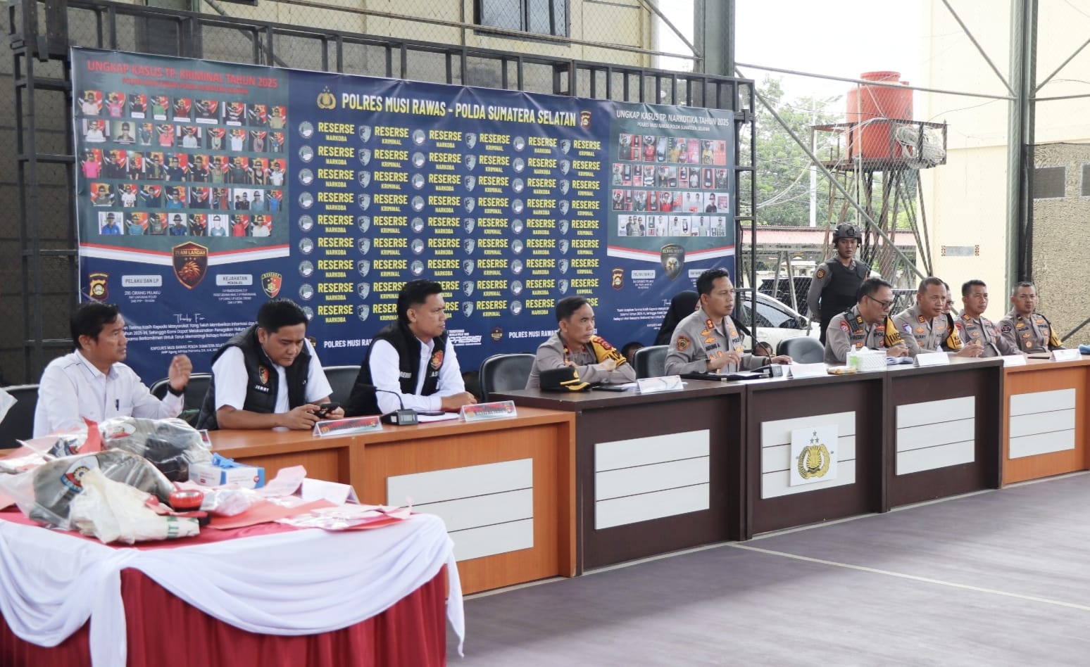 Pernyataan tersebut disampaikan secara langsung oleh, Kapolres Musi Rawas, AKBP Agung Adhitya Prananta, SH, SIK, MH, didampingi, Wakapolres, Kompol Hendri SH, Kabag Ops, AKP Freddy Rajaguguk SH, Kasat Reskrim, AKP Redho Agus Suhendra, S.Tr.K, SIK, M.Si, Kasat Intelkam, AKP Zulkifli, Kasat Lantas, AKP Muriyanto SH, MH, Kasat Resnarkoba, Iptu Jemmy A Gumayel, SH, MH, Kasat Tahti, Iptu Sinambela, Kasi Propam, AKP Sutrisno dan Kasi Humas, Ipda Aji Lamsari, beserta personel Satreskrim, Satresnarkoba, Satlantas serta personel Polres Musi Rawas, dihadapan insan pers, di Mapolres Musi Rawas, Rabu (31/12/2025).