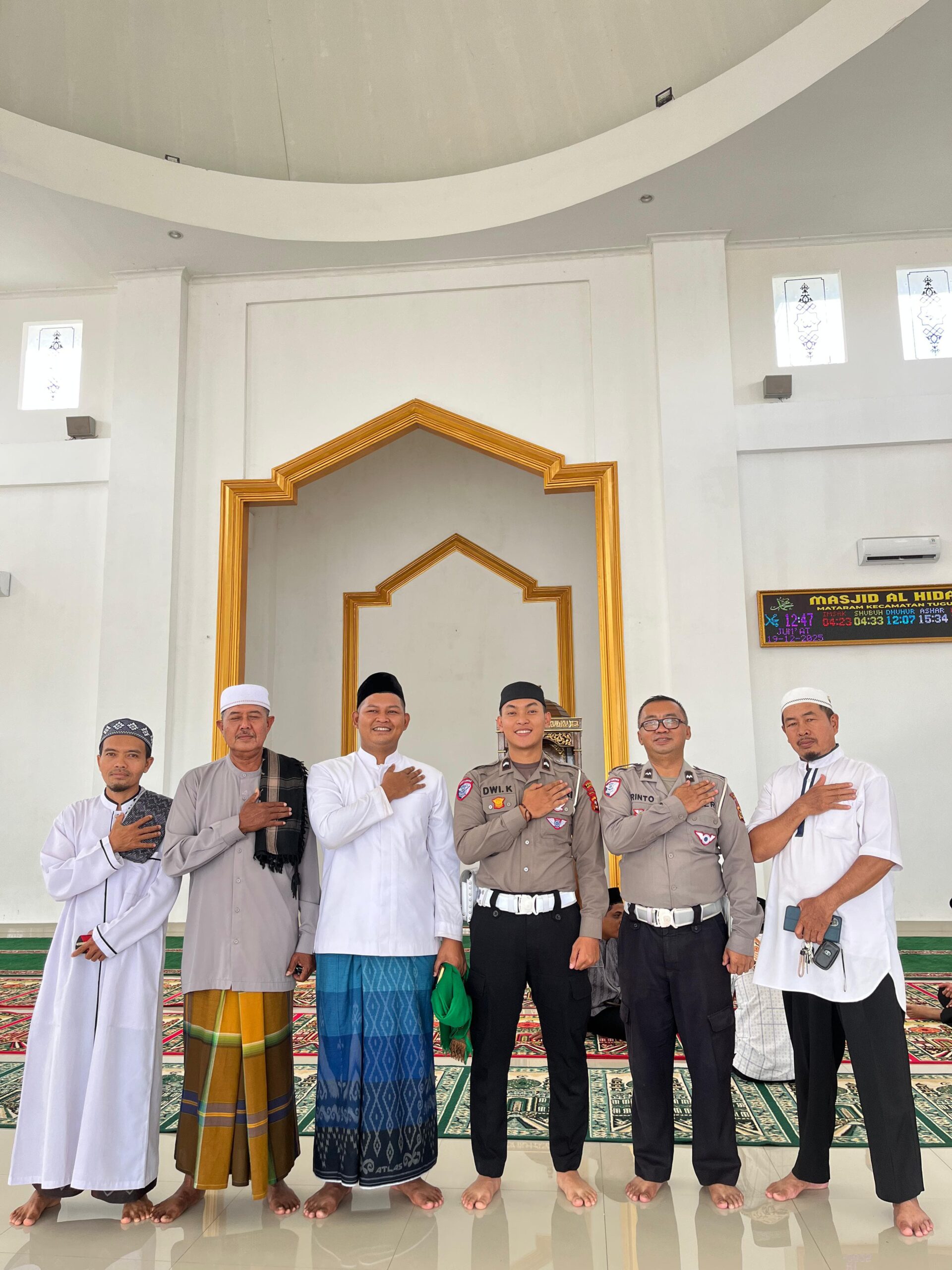 Program ini diwujudkan dengan keterlibatan langsung personel Satlantas Polres Musi Rawas, Bripda M. Dwi Kurniawan, yang bertugas sebagai bilal Salat Jumat di Masjid Al Hidayah, Desa G1 Mataram, Kecamatan Tugumulyo, Kabupaten Musi Rawas, Jumat (19/12/2025).